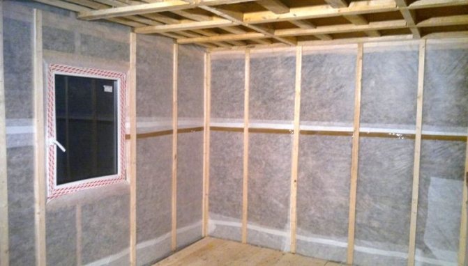 Започнете да полагате първата корона на стените. За да направите това, първо поставете летви с дебелина до 1,5 см, предварително обработени с антисептик, върху хидроизолираната основа. Поставете ламелите на стъпки от около 30 см.