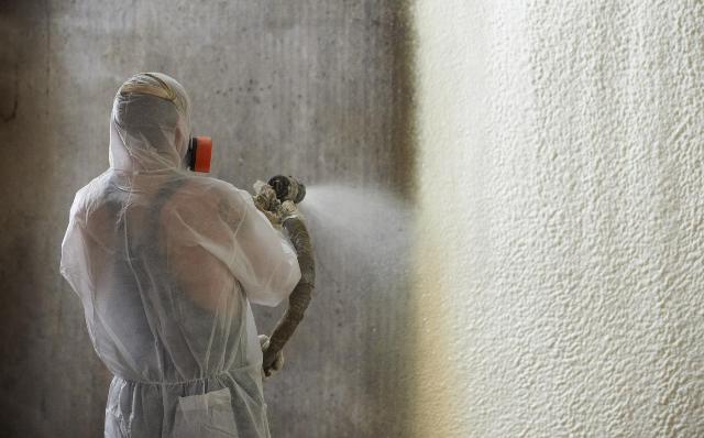 Фигура 4. Топлоизолация на фасади чрез пръскане.