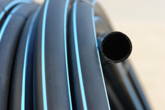 Полиетиленовите водопроводни тръби са маркирани в черно (често със сини надлъжни ивици)