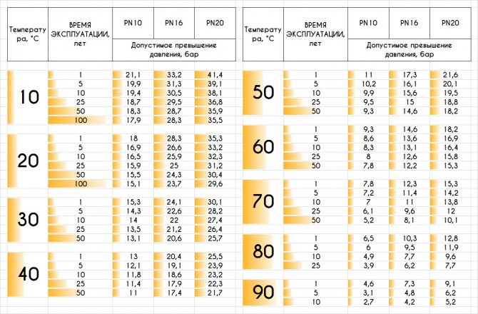 Срокът на експлоатация на такива устройства е най-малко 50 години. Допустимото работно налягане е 6-16 kgf / кв. см.