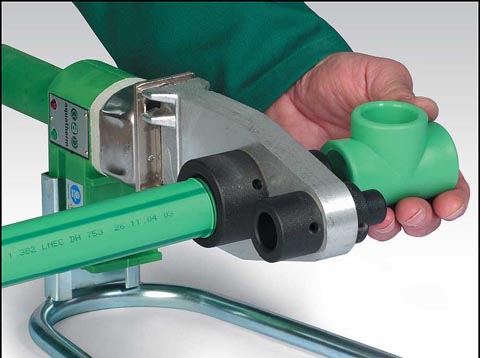 - Метод на термично заваряване. Използва се за свързване на полипропиленови тръби с голям диаметър. За работа е необходима заваръчна машина, която с помощта на автоматизация напълно контролира процеса на съединяване на части. Майсторът само нарязва равномерно пластмасовите части, отстранява от тях резки и ги монтира в машината.
