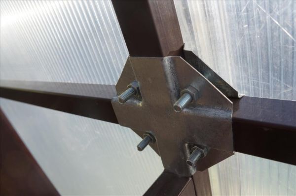 Разглобяемо свързване на профилни тръби с болтове по време на изграждането на оранжерия