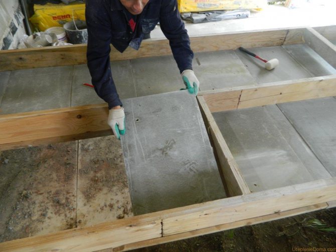- С замазка над пода. За топлоизолация на конструкцията е подходящ траен лист от пяна, пресована минерална вата. Основата е направена от бетонна плоча, която е фиксирана към стени или лентови основи.