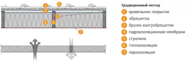 Ако таванското пространство не трябва да се използва като жилищно пространство, тогава такава схема на изолация не е напълно подходяща, тъй като в този случай е необходимо да се изолира таванското пространство чрез полагане на изолацията на таванския под.