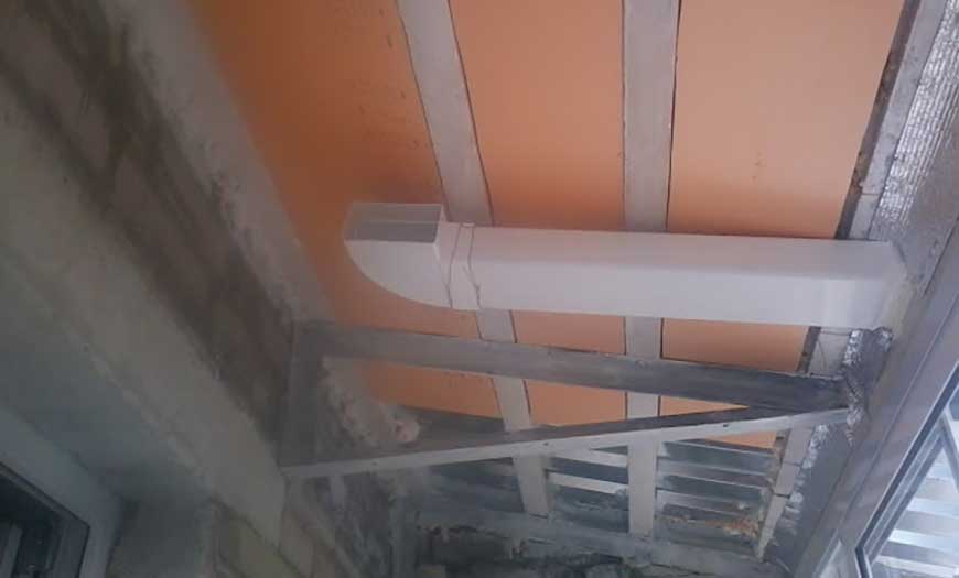Така че прилепването на плочките към квадратна или правоъгълна тръба да е херметично, около нея е подредена престилка от поцинкована или полимерна материя. Престилката е прикрепена към щайгата със самонарезни винтове, а плочките са монтирани отгоре.