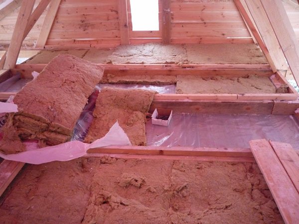 - На върха на таванните греди трябва да се поставят дъски, между които трябва да се обработят празнините.