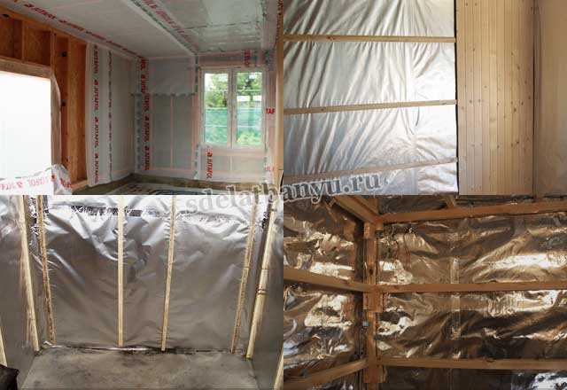 Парна изолация на баня и сауна се извършва на няколко етапа: