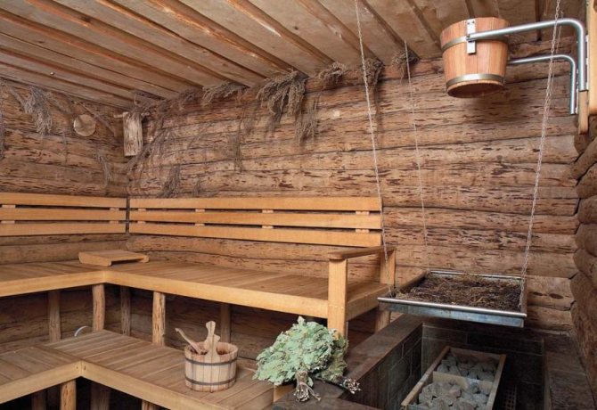 Възможно е също така да се изпари таванът във ваната, като се използват общодостъпни материали. Този метод включва подаване на таванни греди с дебели, над 50-60 mm дъски, понякога необрязани. В тавана на дъските е поставена бариера срещу пара.