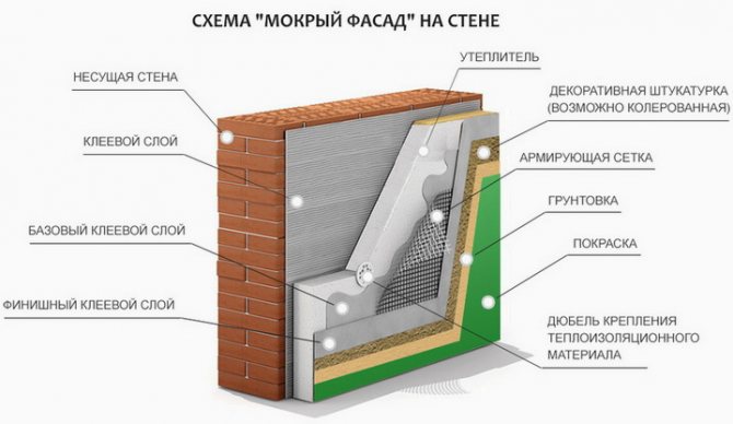 Набор от компоненти за мокра изолация на фасади може да бъде закупен като комплект или оформен самостоятелно. Всеки комплект включва лепилна смес за фиксиране на изолация, изолация и дюбели за фиксиране на изолация, армираща мрежа, строителна смес за армиране на изолация и мазилка.