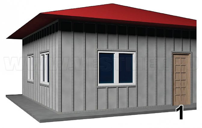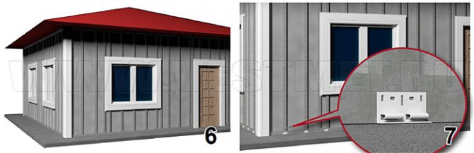 - Те извършват закрепване на специални части за ъглите на къщата, отворите на вратите и прозорците. Не забравяйте за отлива, за да избавите стената от излишната вода.