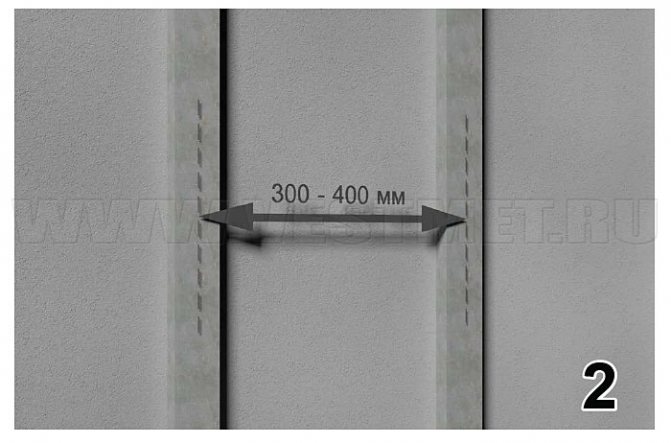 Пръчките на първата обвивка са подравнени в една равнина - по отвеса и по кабела. Ако е необходимо, под тях се поставят парчета шперплат.