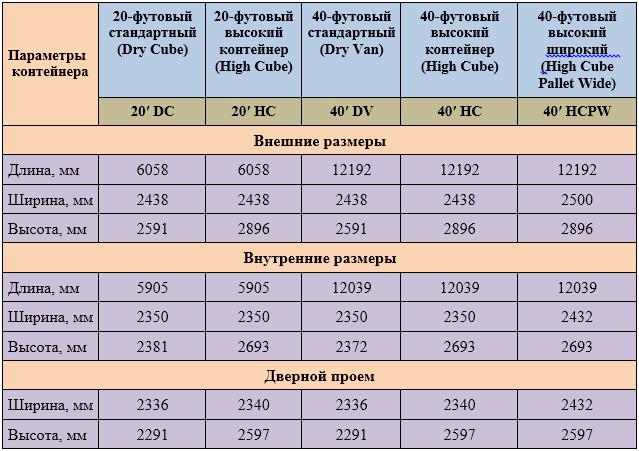 Таблица с размери на контейнера за доставка