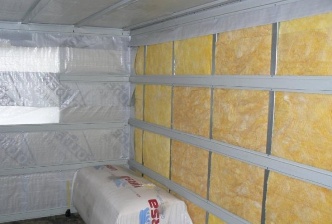 - Изолирайте морския контейнер отвътре, като поставите изолацията в жлебовете между решетките;
