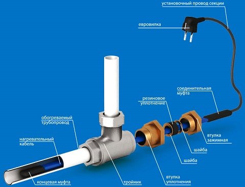 - отопление на канализационни тръби с помощта на специален кабел;