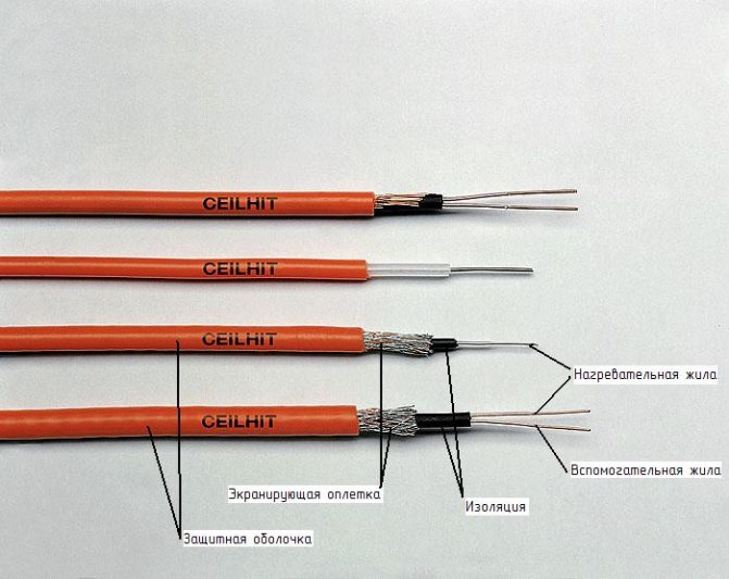 Три вида кабел могат да се използват за отопление на тръби: