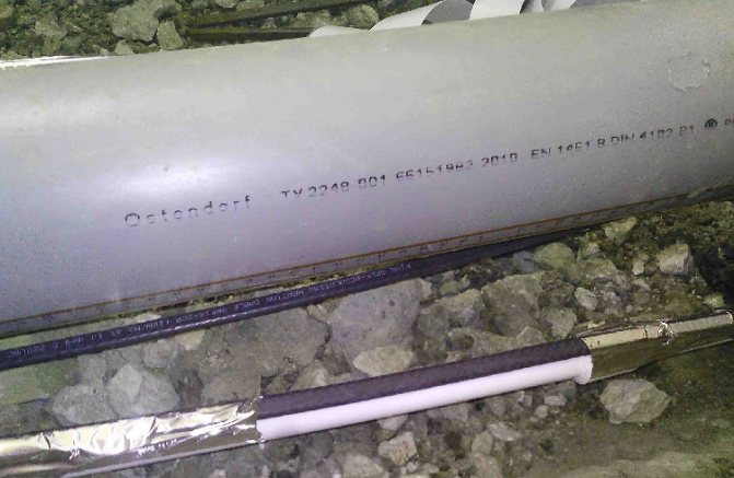 За полагане на нагревателния кабел вътре в тръбата изберете кабел със специална защита срещу агресивни ефекти, например DVU-13. В някои случаи марката Lavita RGS 30-2CR се използва за монтаж вътре. Това не е напълно правилно, но валидно решение.