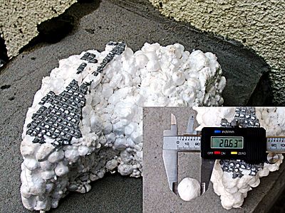 Нискокачествен експандиран полистирол от типа PSB: възниква прекъсване по контактната зона на топки с различни размери