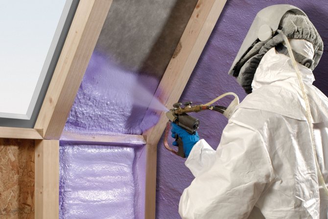 - пръскане с помощта на специално оборудване от полиуретанова пяна върху повърхността директно върху обекта;
