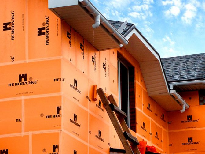 Важно! За да изолира фасадата, Penoplex е фиксиран към рамка, изработена от метален профил.