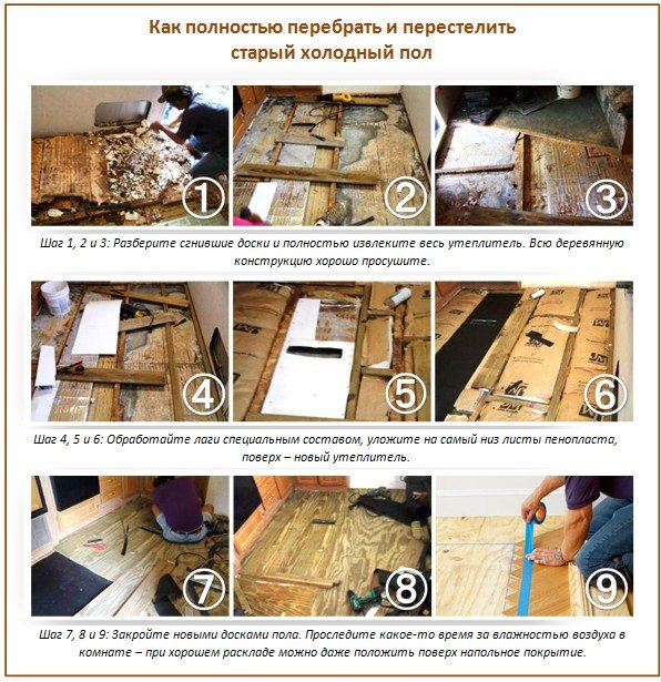 - Естественото дърво, от което се правят дъски за подове, в крайна сметка се влошава и изсъхва. Образуват се пукнатини. През тях навлиза студен въздух, който охлажда подовете. Ако къщата е стара, тогава е разбираемо защо подовете са студени.