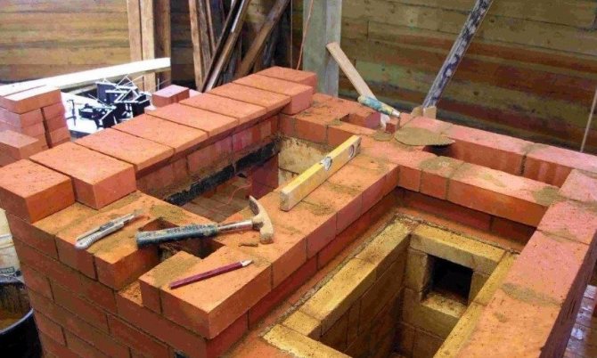 - Работната част на камината може да бъде направена само от шамотни тухли, които не трябва да влизат в контакт с обикновени тухли;