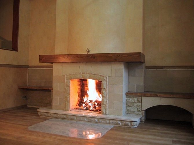 - Въпреки факта, че пиедесталът е сепаратор между камината и пода, тази опция е подходяща и ефективна само за затворени огнища, тъй като разделянето е в състояние да предпази горимите покрития от прегряване.Ако обаче камината на вашата камина е отворена, сглобяването на подиума няма да е достатъчно, за да осигури пълна и безусловна безопасност на къщата и покритията.