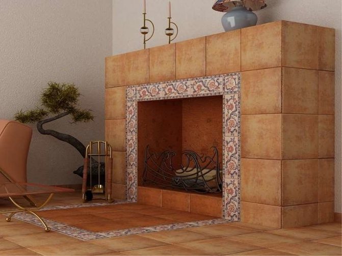 Доста често, за целите на пожарната безопасност, подът е завършен с обикновен лист метал. Като подходящ материал обикновено се използва мед. Медта има определени предимства пред другите метали.Той има характерен нюанс, подобен на цвета на пламъка, който хармонично се вписва в платформата в уютната атмосфера на стаята.