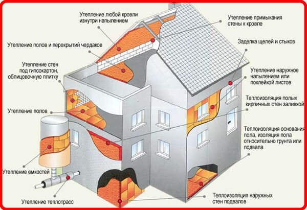 Схема за изолация на къщи с полиуретанова пяна.