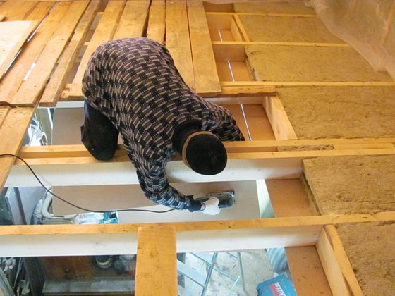 Върху изолационните плочи те са покрити с хидроизолационен филм, отгоре на който, за да се осигури възможността за свободно движение по тавана, е монтиран под от стари дъски.