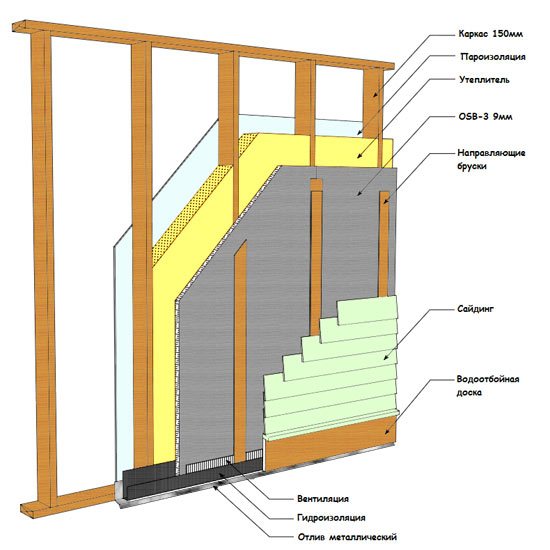 От вътрешната страна облицовката е закрепена към стените - най-често това е GKL или OSB. След това те отиват от външната страна на оградата на стената, за да направят довършването на фасадата. Предшества се от покритие с ветроустойчив слой, допълнително предотвратява образуването на конденз и предотвратява навлизането на влага в структурата на рамката. Като такива могат да се използват специални материали с подобрени характеристики или като бюджетен вариант обикновен полиетилен. На последния етап се извършва монтаж на фасадни елементи