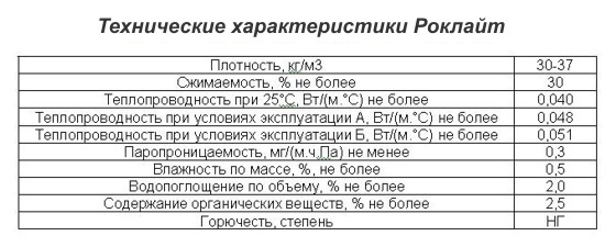 Топлопроводимостта на материала е 0,036W / m. Този индикатор е в съответствие с всички стандарти, необходими за устройството за топлоизолация в студен климат.