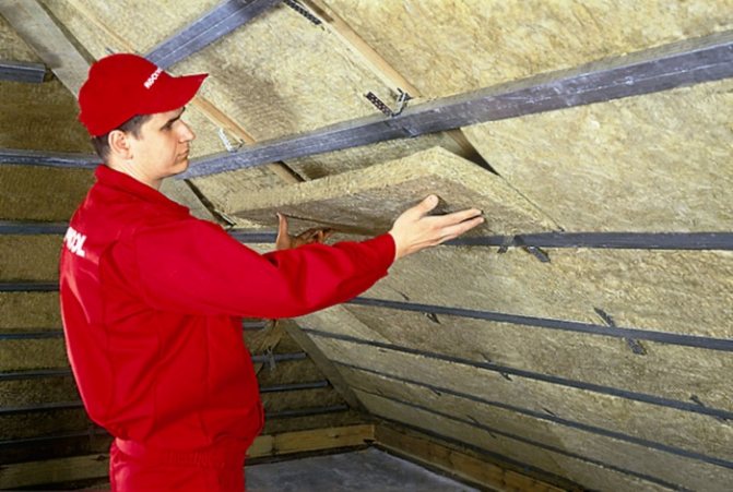 Ако говорим за скатен покрив, тогава е важно да оставим вентилационна междина между изолацията и самата конструкция. За това "Rocklight" е монтиран директно върху гредите на рамката, които са подсилени отвътре на разстояние 30 сантиметра един от друг.