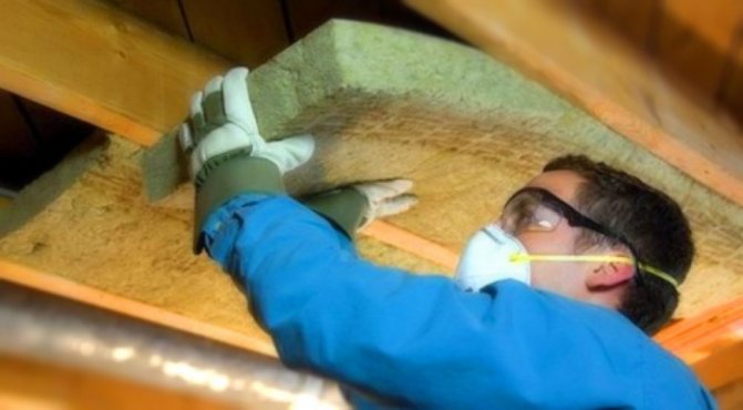 Каменната вата, макар и в по-малка степен от стъклената, все още причинява дразнене, когато попадне върху кожата. Следователно е необходимо да работите с него с ръкавици. Освен това е желателно да се защити дихателната система.