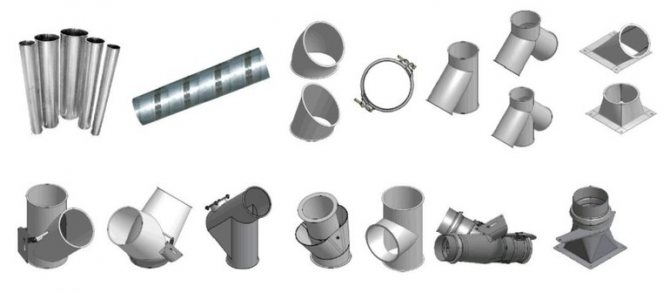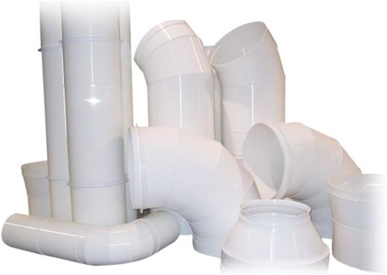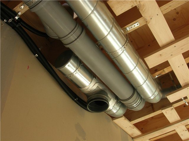 За полагане на въздуховодите се използва поцинкована вентилационна тръба 100 mm и 110 mm. Полимерните части имат еднакви диаметри. Тръбите, предназначени за подреждането на канализационната система (например гофрирането, свързващо изхода на канализацията с тръбата), са с размер 120 mm.