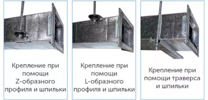 а - в тухлена стена; b - хоризонтално окачен; в - в браздата на стената, покрита с плоча; d - конфигуриран с вграден гардероб; d - прикрепен (стенен) вертикален; д - в преграда, обшита с листове суха мазилка; g - страничен канал близо до външната стена.