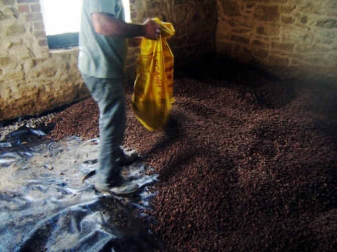 - След това се излива експандирана глина. Препоръчва се незабавно да се определи дебелината на слоя му, тъй като ефектът на топлоизолация ще зависи от този параметър.