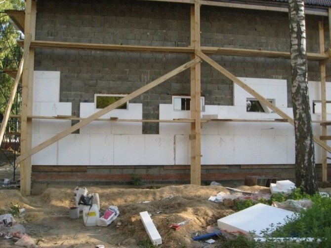 - Стените, направени от описания материал, лесно се разрушават под въздействието на външни фактори. За да защитите материала, струва си да направите облицовка и да изолирате сградата отвън. Често за това се използват облицовъчни тухли.