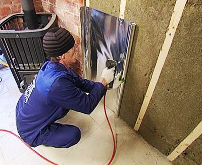 Когато се облицоват стените на сгради за баня, фолиото е прикрепено към повърхността или върху слой топлоизолация. Такава работа ще отнеме малко време и няма да изисква много усилия.