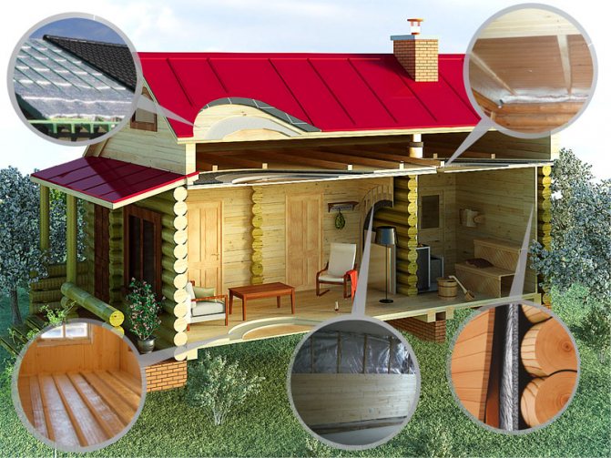 Необходимо е да се вземат предвид пропорциите на изолацията и материала, от който са получени стените на банята. Дебелината на основата трябва да бъде различна за парни бани с дърво и тухли.