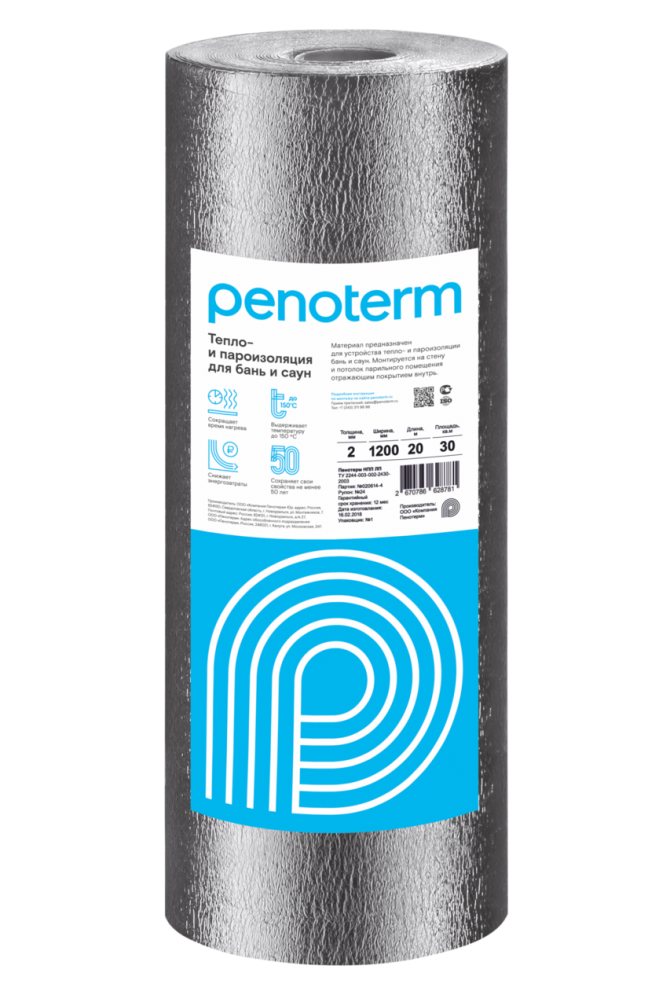 Penotherm NPP LF е топлоизолационен материал, изработен от експандиран полипропилен с алуминиево фолио. Той е отразяваща топлоизолация, тъй като използва полиран алуминиево фолио. Използва се главно за топлоизолация на стени и тавани във бани и сауни.