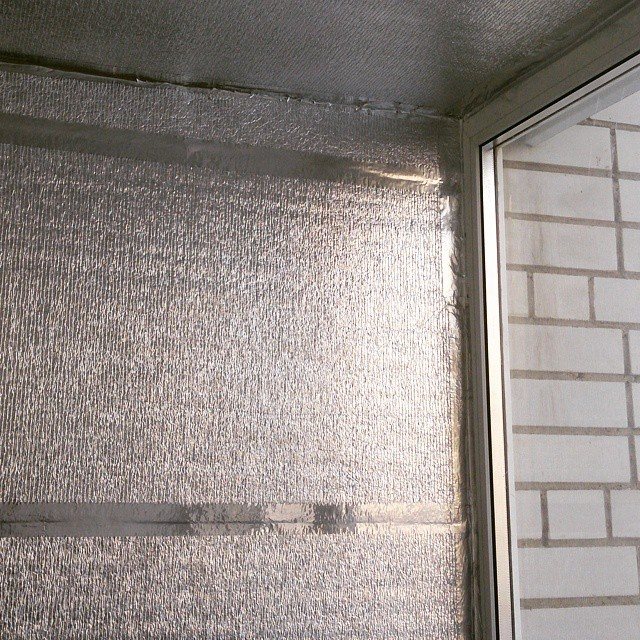 - По-добре е да се съединят листовете от материал съединение към съединение, което дава еднородност при отражението на топлината. Но ако например е изолирана лоджия, също е допустимо присъединяване по метода на припокриването до ширина до 10 cm.