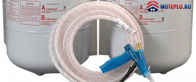 PPU се доставя на мястото под формата на два течни компонента, маркирани с буквите A (полиол) и B (изоцианат). Преди да се пристъпи към смесване на тези вещества и изливане на сместа в кухината, полиолът трябва да се нагрее до 30-350 ° С, а изоцианатът до 40-500 ° С. След това компонент А се смесва в продължение на 10-15 минути до гладка смес. Всичко това правим в специален хидравличен агрегат с вградена отоплителна система и отопляеми маркучи. С помощта на пистолет съставът от полиуретанова пяна се подава в процепа на стената, където се разширява и запълва празното пространство между ограничаващите повърхности, както и най-малките пукнатини, дефекти в зидарията или плочите.