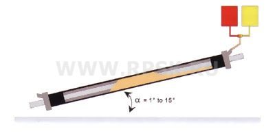 При изливане отдолу тръбите са разположени под ъгъл от 0 ° до 15 ° спрямо равнината на пода (вж. Фиг. 1). Изборът на ъгъл зависи от дължината на тръбата и течливостта на използваната система. Необходимото количество смес се инжектира в пространството между стоманените и пластмасовите тръби през отвор в долния капак. Тук пяната започва да се разширява. Дупката се затваря със запушалка веднага щом пяната достигне до нея, което води до разширяване на пяната нагоре по тръбата. Отработеният въздух се изпуска през отворите в горния капак. След като пяната достигне горните отвори, те също се запечатват. Системата се оставя известно време, за да завърши реакцията, след което крайните капачки се отстраняват.
